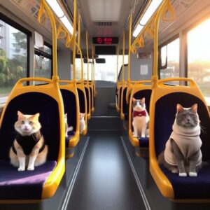 (Bussin ääntä ja kissojen puheen sorinaa taustalla.)